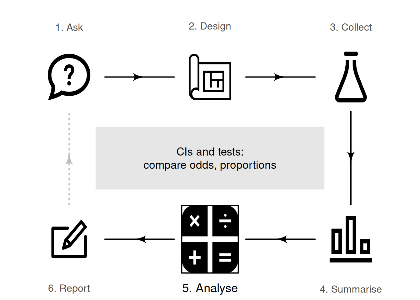 You have learnt to ask an RQ, design a study, classify and summarise the data, construct confidence intervals, and conduct hypothesis tests. In this chapter, you will learn to: