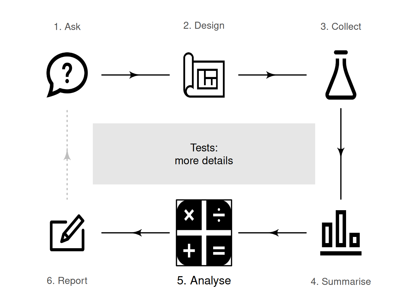 You have learnt to ask an RQ, design a study, classify and summarise the data, construct confidence intervals, and conduct hypothesis tests. In this chapter, you will learn more about hypothesis tests. You will learn to: