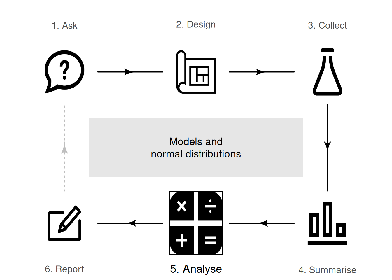 So far, you have learnt to ask an RQ, design a study, describe and summarise the data, and understand sampling variation. In this chapter, you will learn to: